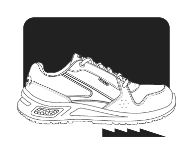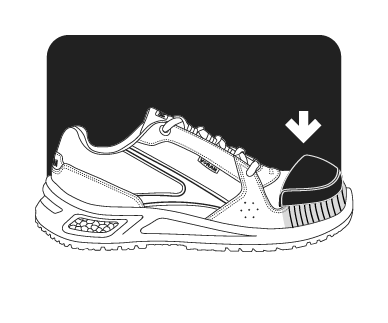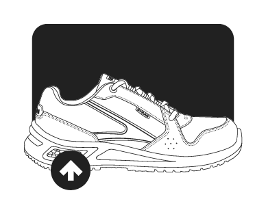 Absorción de energía en la zona del talón. Diseñados para resistir impactos en la zona del talón de hasta 20J de energía.