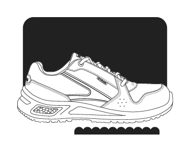 La plantilla resiste una fuerza de perforación de 112 kgf. Reduciendo la posibilidad de lesiones causadas por objetos cortantes que puedan penetrar en la base del calzado.