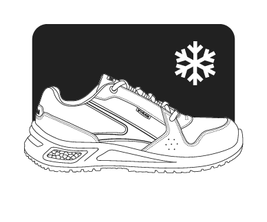 Aislamiento al frío del piso. Diseñado para impedir que la temperatura baje más de 10 °C cuando el calzado está sobre un piso a -17 °C durante 30 minutos.