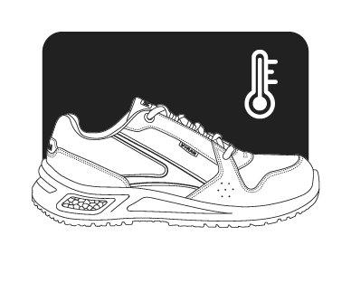 Aislamiento al calor del piso. Diseñado para impedir que la temperatura suba más de 22 °C cuando el calzado está sobre una superficie a 150°C durante 30 minutos.
